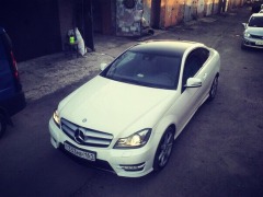 Стайлинг автомобиля Мерседес С180, черной глянцевой пленкой от KPMF. Оклеены детали: крыша под "панораму", лип-спойлер, задняя и передняя губа бамперов